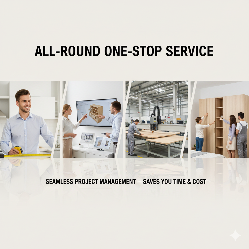 Located in Dongguan Shijie Town, one of China’s major furniture manufacturing centers, our 2,000 m² modern factory integrates professional design, CNC-based production, and precision installation—creating a seamless furniture experience from concept to completion.